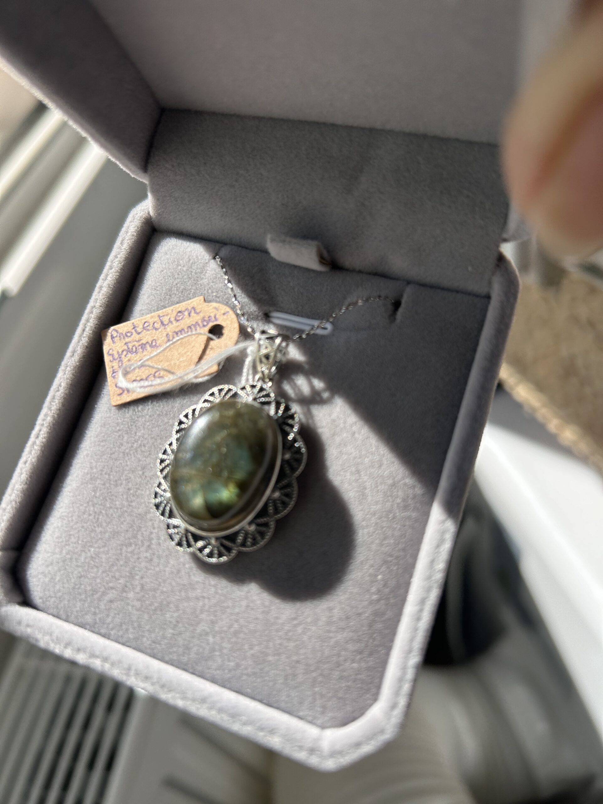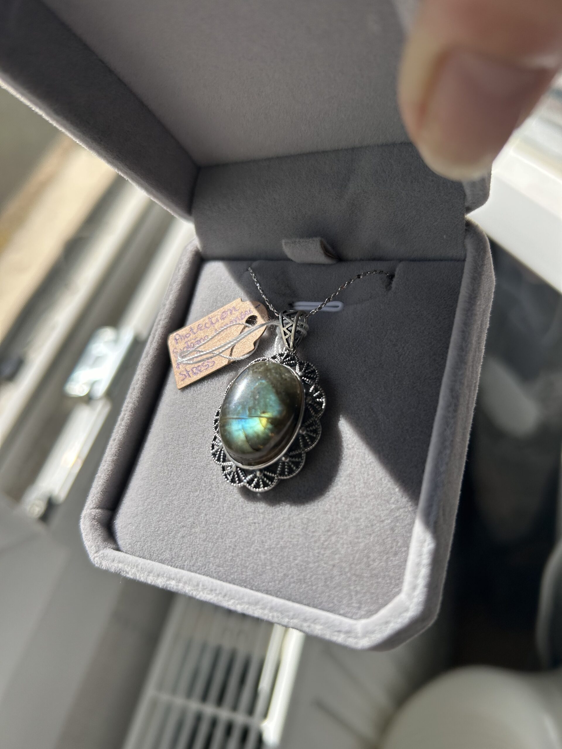 Chaîne de 45 cm en argent et pendentif en Labradorite et argent.