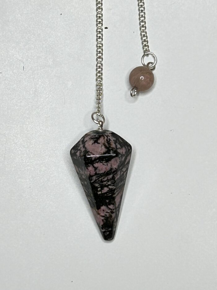 Pendule en rhodonite et acier inoxydable. La rhodonite est la pierre anti-choc émotionnel. Elle aligne le Chakra de la base avec le Chakra du cœur. Elle résorbe les chocs et absorbe les traumatismes anciens ou récents. Elle accroît les niveaux d’énergie du corps et du mental. C’est une pierre anti-stress. Elle favorise les capacités d’auto guérison. Elle aide à retrouver l’estime de soi dans la douceur. Elle renforce le système immunitaire et équilibre le système nerveux.