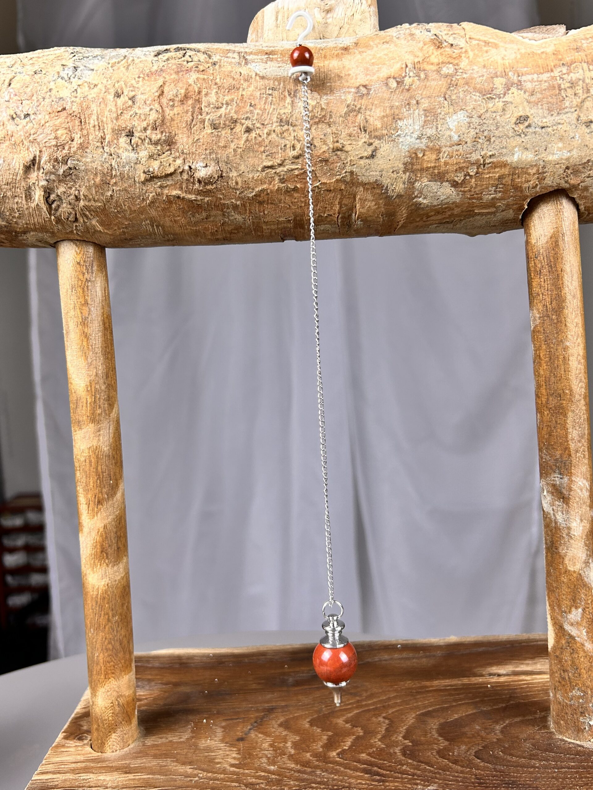 Pendule en jaspe rouge et acier inoxydable. Le jaspe facilite l’ancrage, le courage et la confiance en soi. Il apporte motivation et bonne humeur. Il permet de lutter contre la fatigue ou le manque de vitalité. Il fortifie l’estomac, aide au transit et évite les nausées. Il stimule l’appareil reproducteur et agit sur les troubles liés à la sexualité.